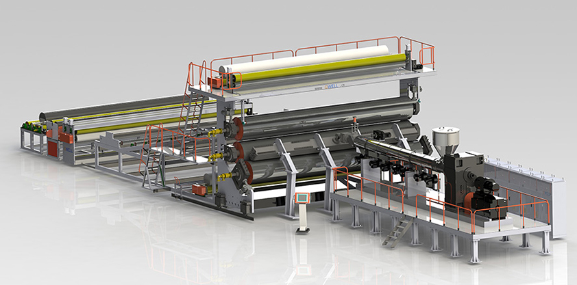 EVA/POE光伏封裝膠膜生產線 光伏聚氨酯邊框生產線 單向/雙向拉伸生產線 流涎膜生產線 片材擠出生產線 防水卷材、地板革設備生產線 板材擠出生產線 發(fā)泡板片材生產線 涂布復合生產線